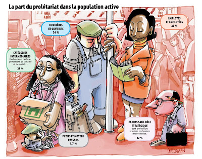 - le prolétariat, comprenant les personnes qui n'ont pas de capital et sont contraintes de vendre leur force de travail pour subsister. Il s'agit de la classe salariée.